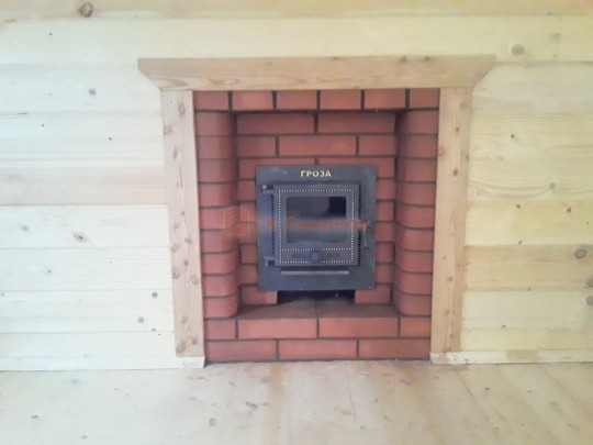 Строительство доступно на любом участке в в области. Консультации менеджера в в городе по бесплатному телефону 8 (906) 200-57-99.На фото можно увидеть печь с выносной топкой фирмы Гроза — клиент покупал её самостоятельно, однако установкой занималась наша бригада. Аккуратно сложенный кирпичный экран вокруг печи — тоже наша работа.